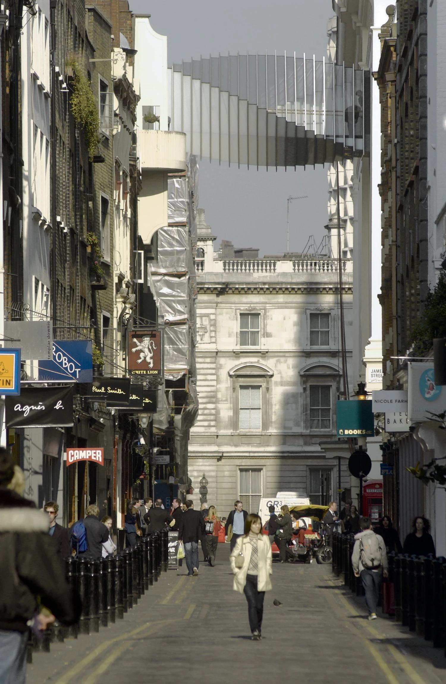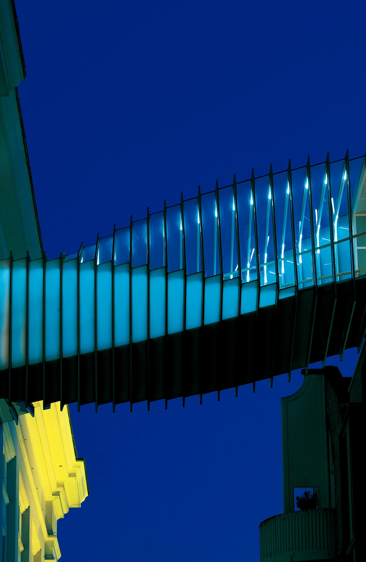 Located high above Floral Street in London’s Covent Garden, the Bridge of Aspiration, completed in 2003, connects The Royal Ballet School to the Royal Opera House, allowing dancers to move freely between the two buildings. Designed by WilkinsonEyre, the elegant twisting structure is intended to evoke the fluidity and grace of dance, as well as provide an eye-catching landmark for the school and its connection to the world-famous performance venue next door.