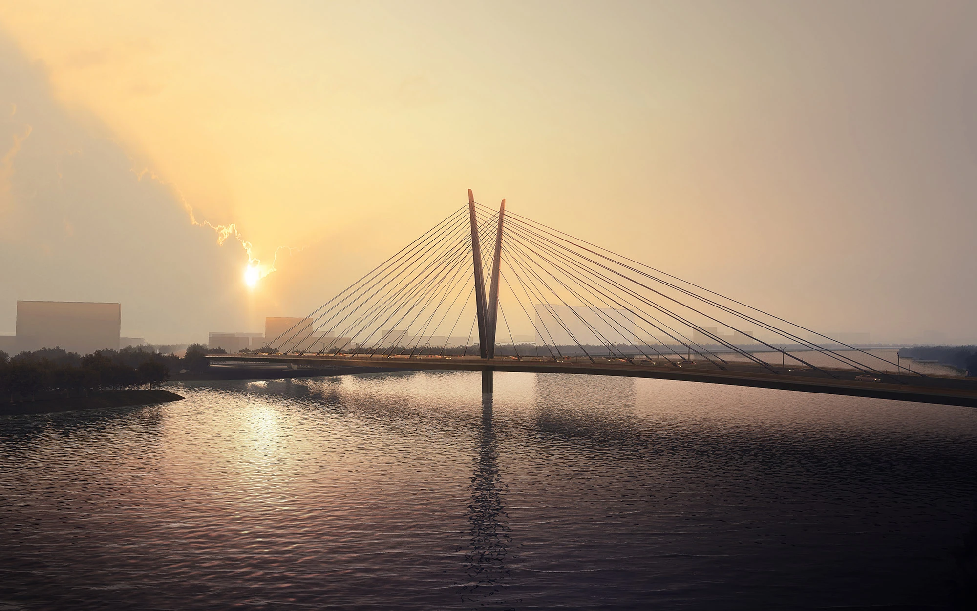 The bridge proposal also carefully considered context including nearby landmark bridges. The design team paid careful attention to both highlighting the bridge itself, and how the design would integrate with the overall surroundings and the city skyline.