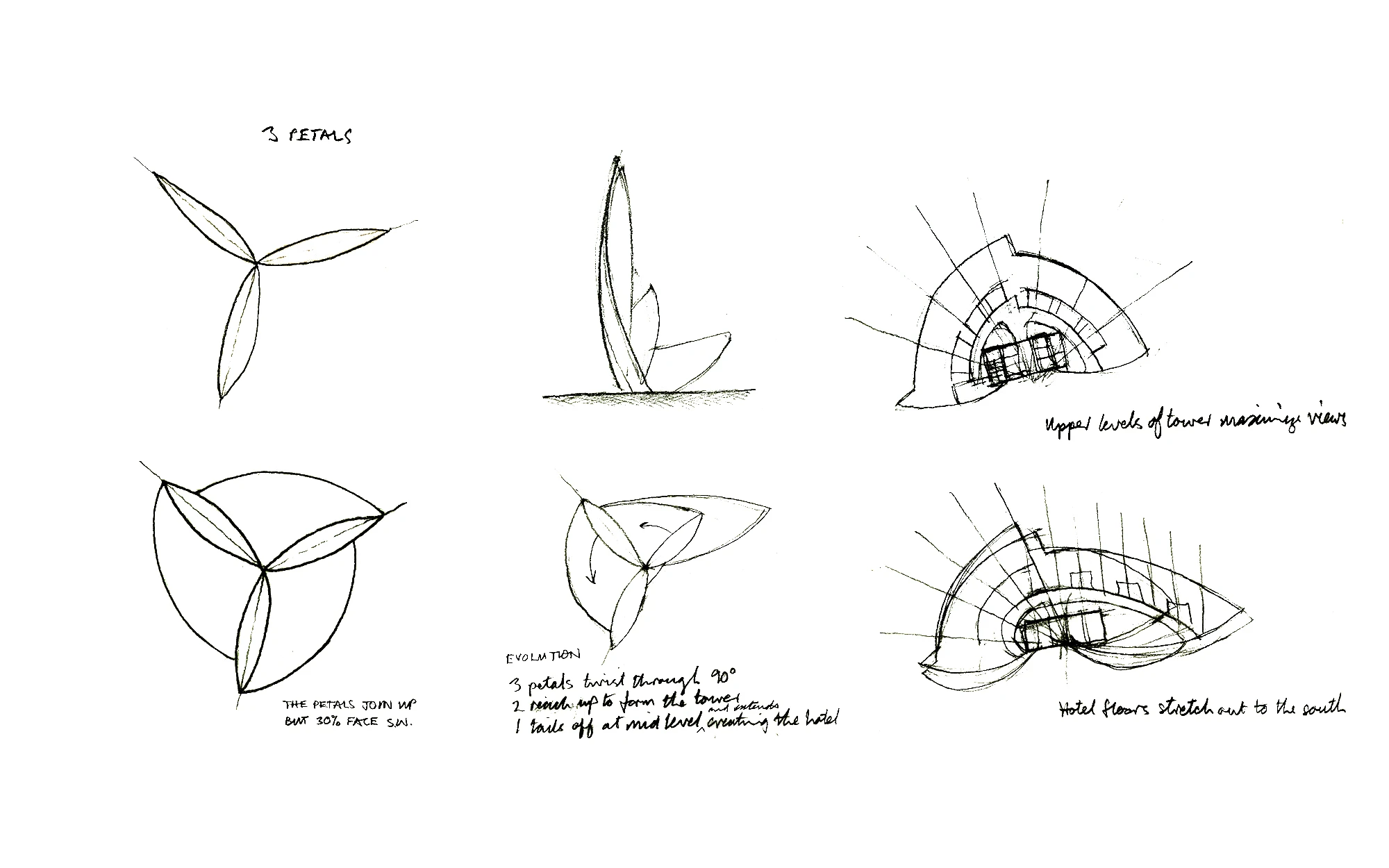 The concept takes its inspiration from nature and an elegant, curved geometry. The tower’s form emanates from three petals that twist and rise together and its sculptural shape maximises the opportunity for accommodation to make the most of the views of Sydney's famous bridge and harbour.