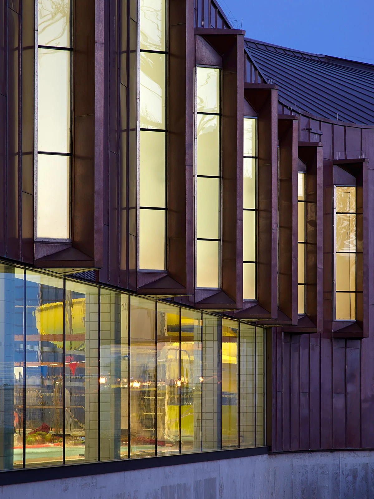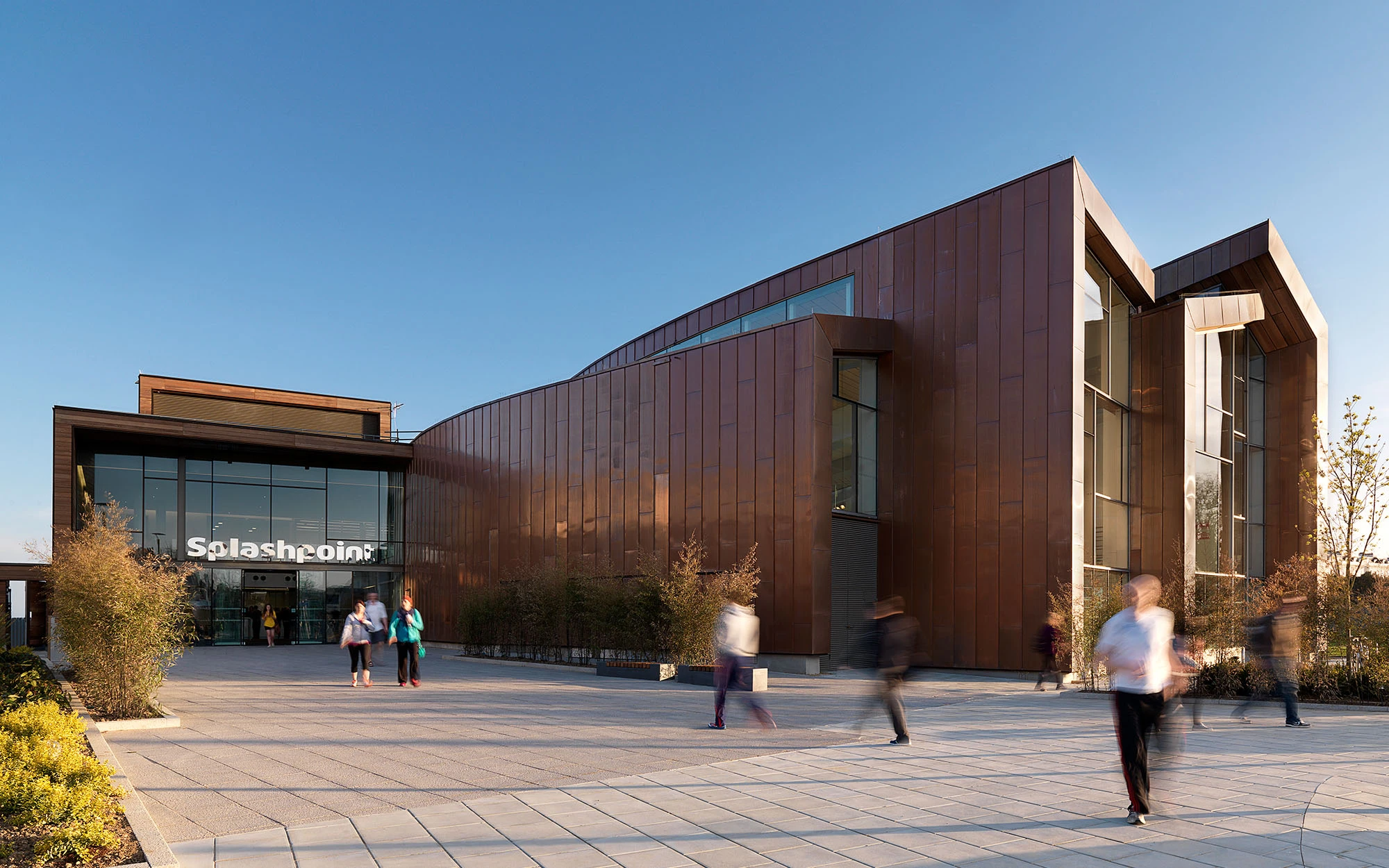 The copper and timber cladding were designed to provide a robust envelope to the building and will gradually weather as the structure settles into its surroundings. Splashpoint was designed with the close involvement of several user groups and other community stakeholders, including a student run competition to name the building.
