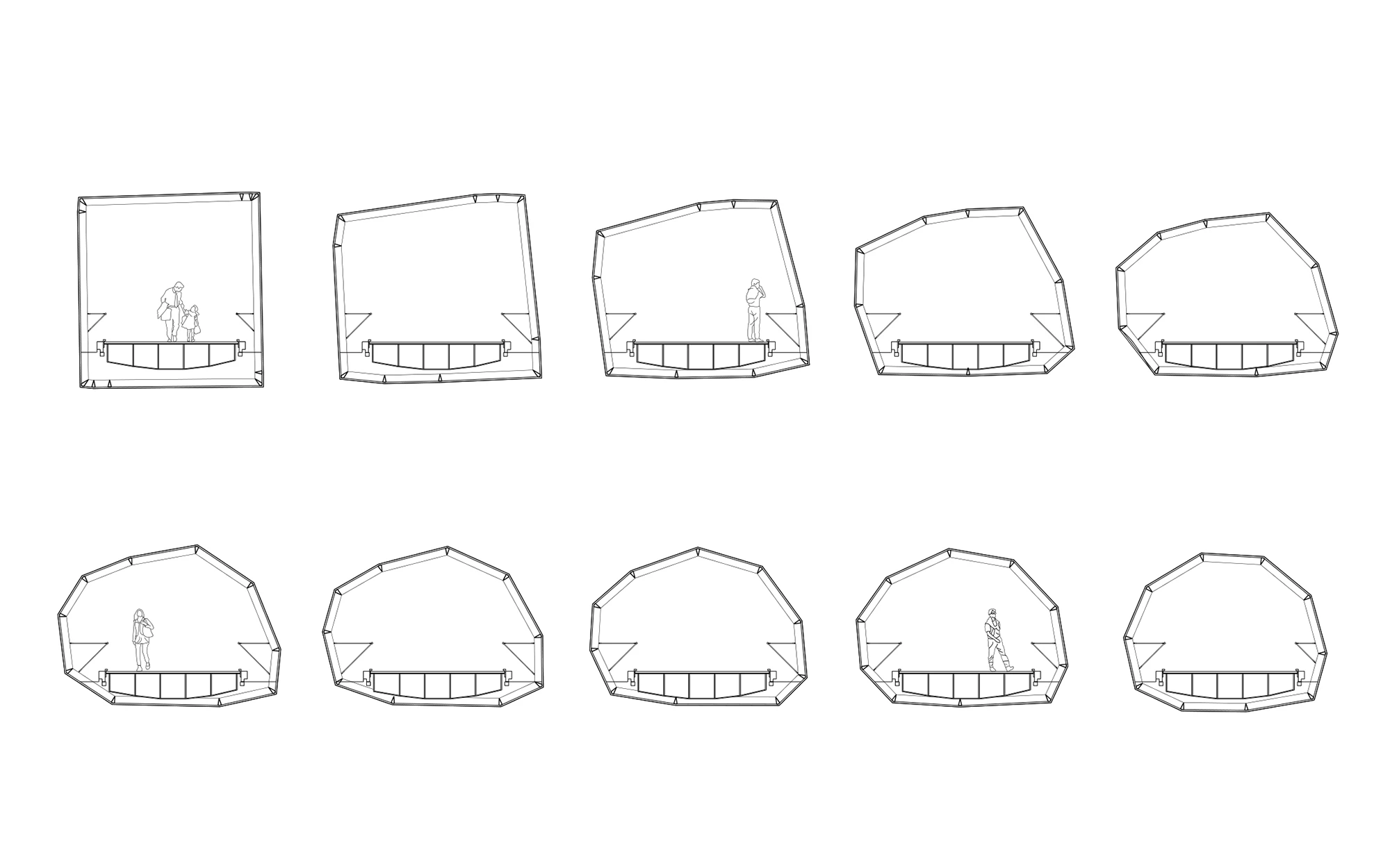 天桥的外立面采用铜质覆盖板和透明玻璃,标志着从传统建筑坚实的外立面到伊顿中心的玻璃幕墙的转变。外立面上排列着铝型材,加强了其扭曲的几何形状表达。铝型材内部还安装了加热电缆,减少冬季结冰的风险,防止冰块掉落到下方的人行道上。